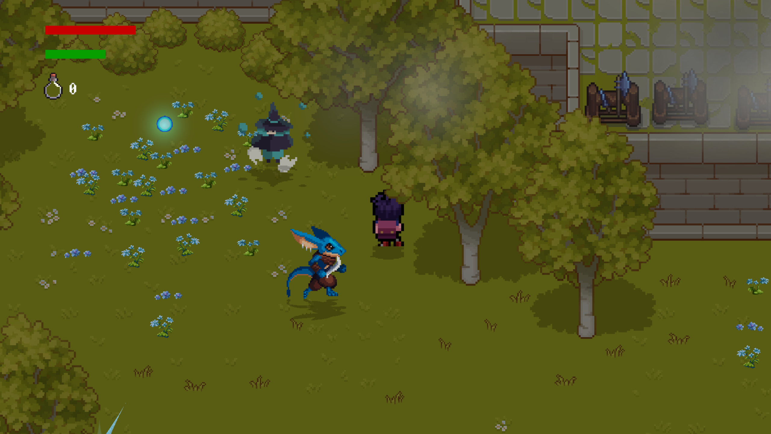 Azurebloom is a pixel-art top-down souls-like. You play as an adventurer drawn into the Verdant Ruins, a forest shrine overrun by Kobolds, knights, and lingering mages still bound by old vows. Among the relics of a forgotten faith blue flowers bloom.